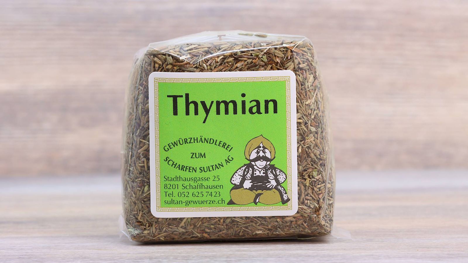 Thymian passt sehr gut zu Schweinefleisch und Wild, Hasenpfeffer, Kaninchen und Lamm. Bei den Gemüsesorten findet Tymian Verwendung bei Aubergine, Zuchetti, Peperoni, Tomaten, Lauch, Karotten, Zwiebeln, Kohl, Bohnen und Kartoffeln etc.