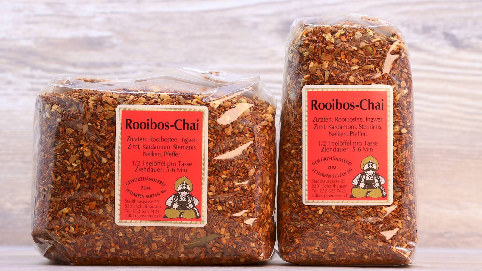 Rooibos schmeckt süsslich und leicht erdig. In Kobination mit dem Chai, hat der Rooibos-Chai eine würzige und süsse Note.