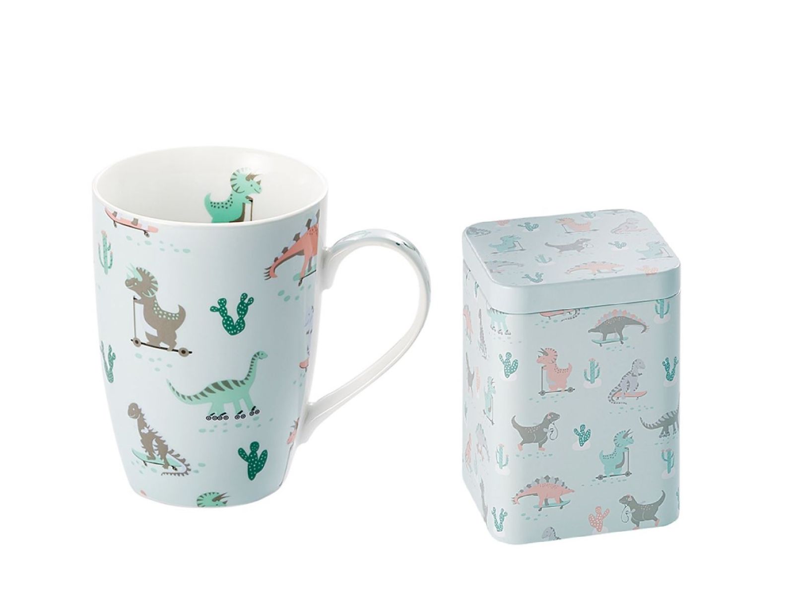 Teedose und Tasse "Fitz" mit Dinosaurier